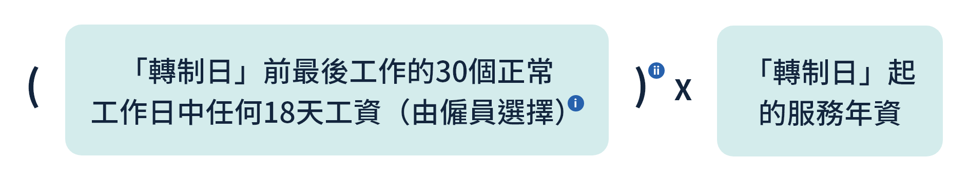 - 僱員亦可選擇以轉制前最後12個月每日平均工資的18倍計算